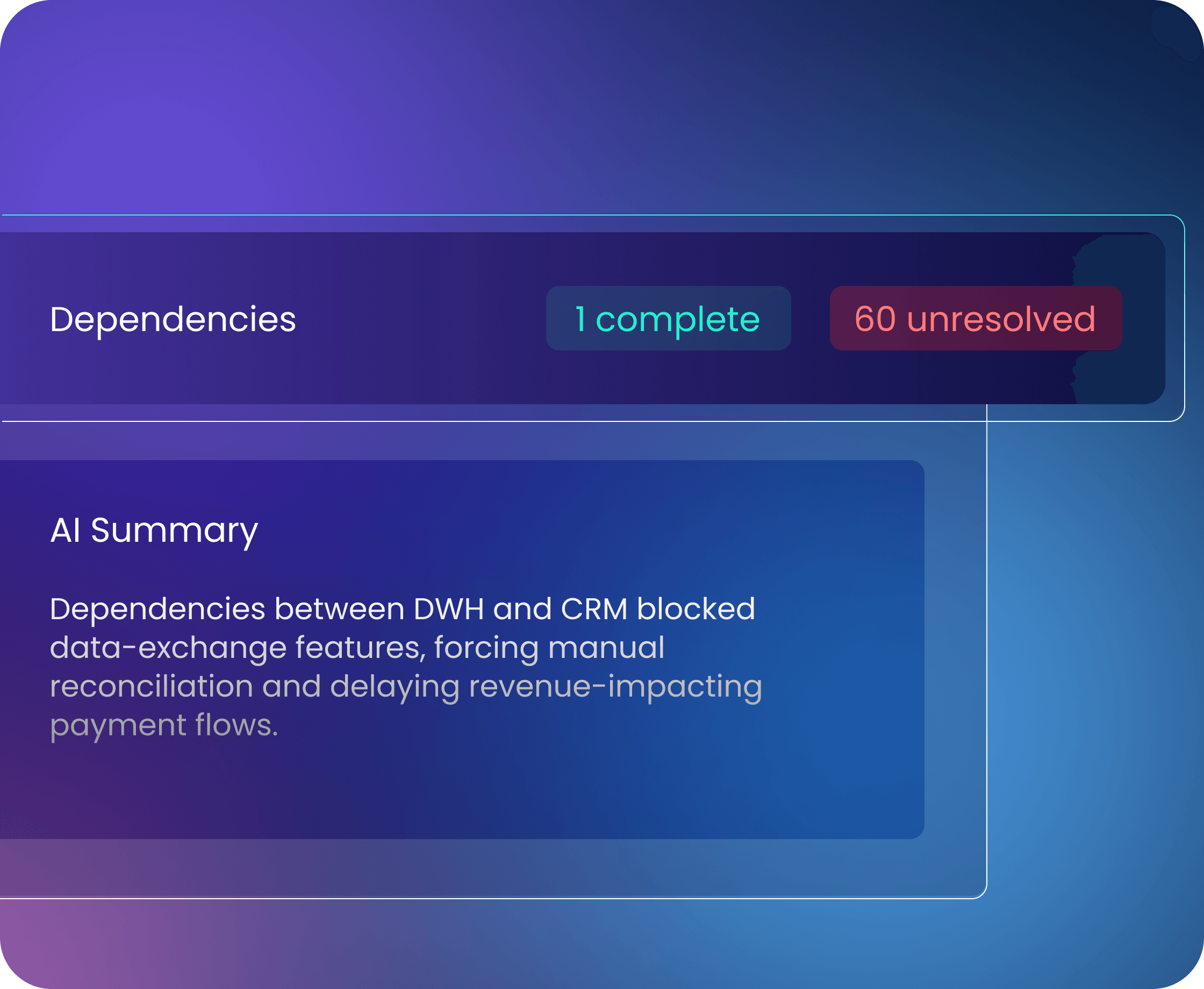 The AI summarizes risk status, affected teams, and recommended actions, making it easier for leadership to intervene quickly.